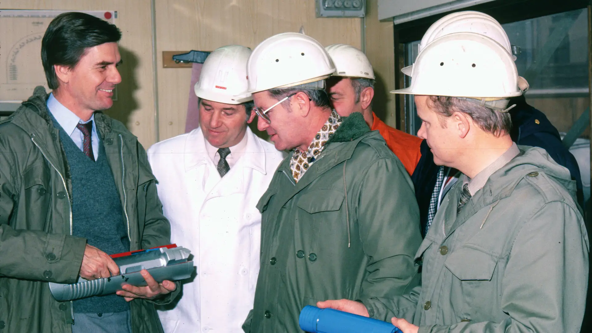 Construction drawings from 1970 demonstrate how far Klemm had already progressed in its transition from drilling company to equipment manufacturer at the time. In 1972, Klemm entirely ceased its drilling operations. This is when the company presented the first hydraulic drilling hammer – a ground-breaking innovation. The hydraulic drilling hammer significantly enhanced performance and improved energy efficiency considerably compared with conventional compressed air methods. Guenter Klemm was informed about the details of the new anchor drilling technology by Dr. Karlheinz Bauer. Even back then, Dr. Bauer showed his first signs of interest in acquiring Klemm.